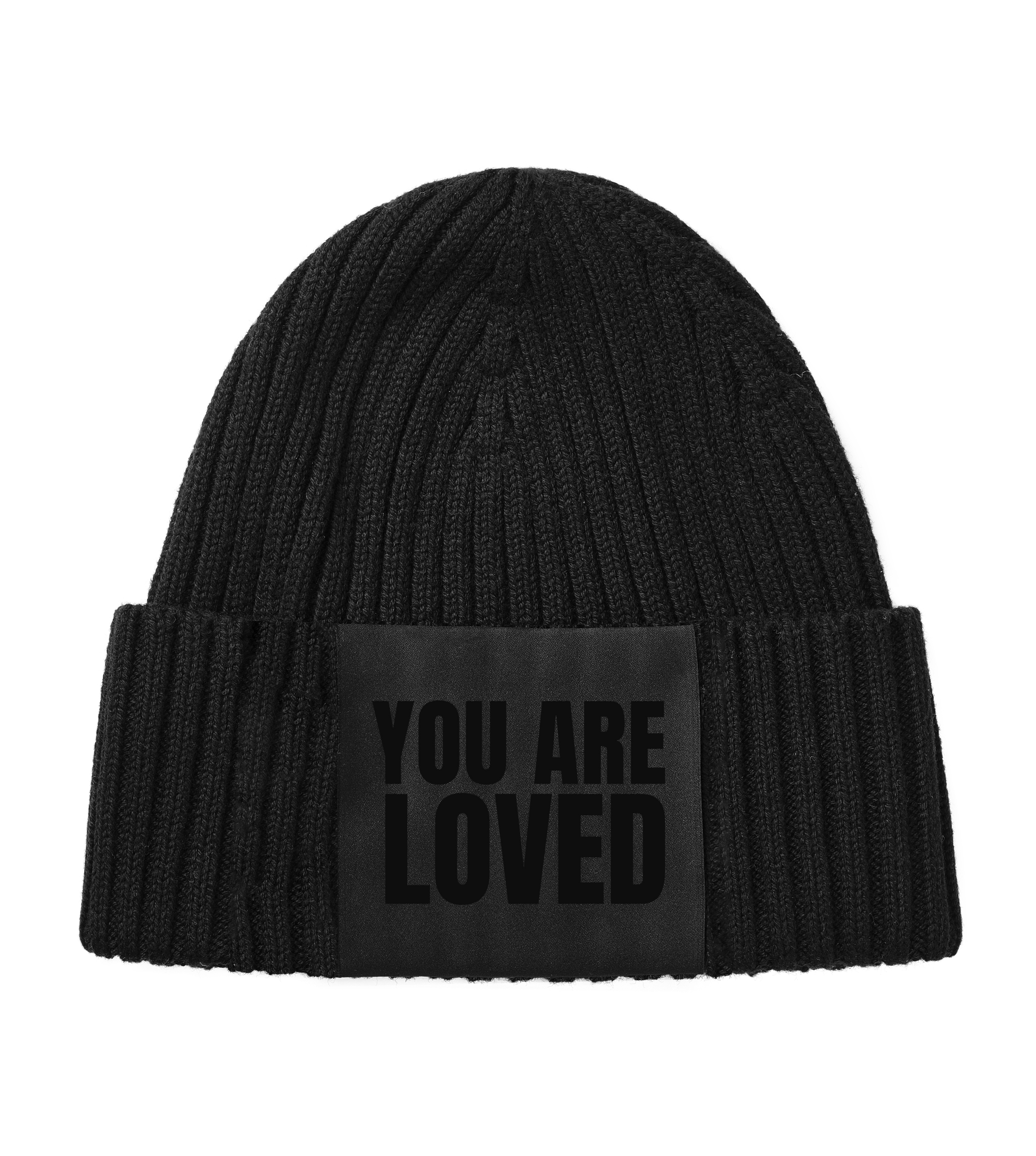 A chunky rib cotton beanie, inspired by a classic fisherman beanie, with a recycled 9x9cm label on the front. The beanie has a turn-up fold with four stitches on each side so the fold stays in place. The label is attached with zig zag stitch for extra security and we've added a little bit of elastane in the composition to help retain its size and fit. Available in one size and a black colourway.
